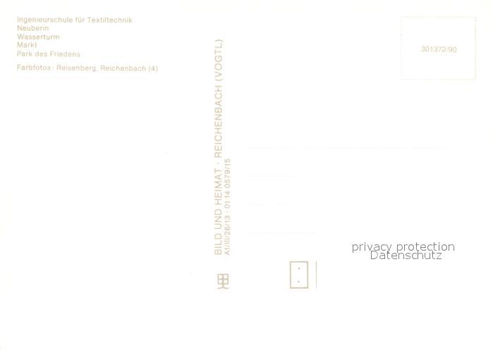 73101044 Reichenbach Vogtland Ingenieurschle Neuberin Wasserturm Markt Park des Friedens postalisch nicht gelaufen Erhaltung siehe scans [WerneD78] KatCode: 11110014178510