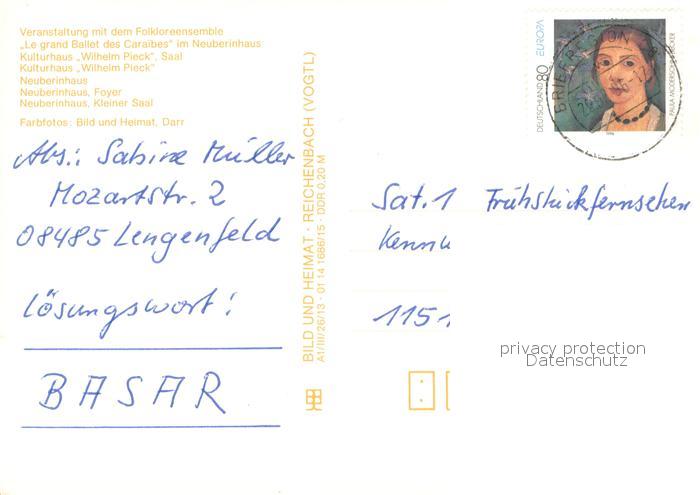 73735164 alte Postkarte Reichenbach Vogtland Kreiskulturhaus Neuberinhaus postalisch gelaufen Erhaltung siehe scans [LiesaD40] KatCode: 11110014178510