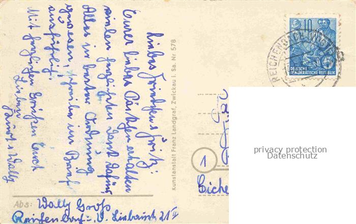 74057618 alte Postkarte Reichenbach Vogtland Sachsen Hoehere Textil Fachschule postalisch gelaufen Erhaltung siehe scans [WerneD78] KatCode: 11110014178510
