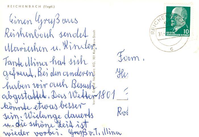 73901809 Reichenbach Vogtland Stadtblick postalisch gelaufen Erhaltung siehe scans [WerneD78] alte Postkarte Wern Katcode 11110014178510