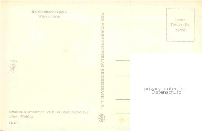 72643619 Reichenbach Vogtland Wasserturm postalisch nicht gelaufen Erhaltung siehe scans [NatalD47] KatCode: 11110014178510