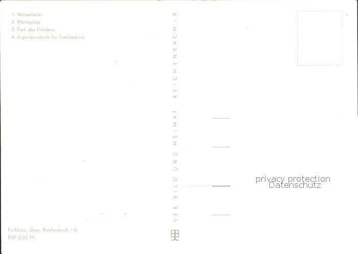72138726 Reichenbach Vogtland Wasserturm Marktplatz Park des Friedens Ingenieurschule postalisch nicht gelaufen KatCode: 11110014178510