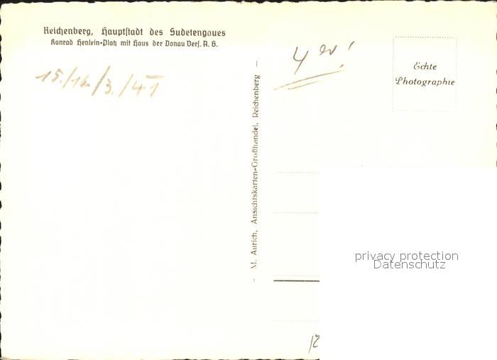 31740045 Reichenberg Liberec Boehmen Konrad Henlein Platz Haus der Donau Vers. A. G. NZ3 postalisch nicht gelaufen Erhaltung siehe scans KatCode: 11520