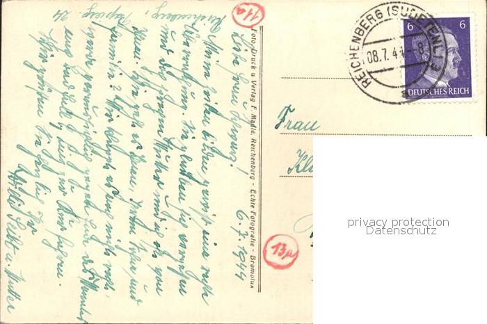 old postcard Reichenberg Liberec Boehmen Rathaus mit Hetzenbrunnen postalisch gelaufen Erhaltung siehe scans