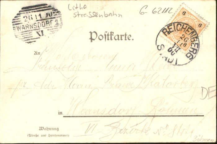 Reichenberg Liberec Boehmen Rathaus Strassenbahn Litho