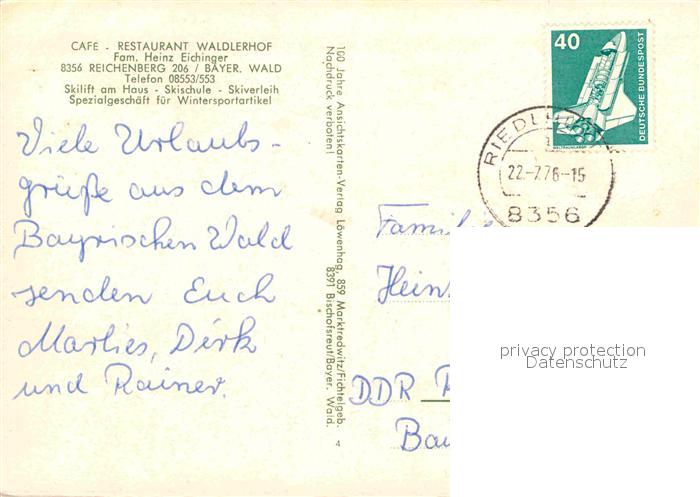 72650656 alte Postkarte Reichenberg Riedlhuette Cafe Restaurant Waldler Hof Gaststube Panorama Skikurs postalisch gelaufen Erhaltung siehe scans [WerneD78] KatCode: 11110009272143