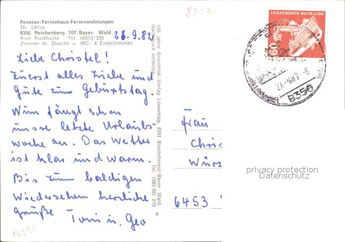 72017115 alte Postkarte Reichenberg Riedlhuette Pension Ferienhaus Uhlig Nationalpark postalisch gelaufen Erhaltung siehe scans KatCode: 11110009272143
