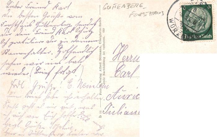 73889185 alte Postkarte Reichenberg Unterfranken Forsthaus Guttenberg Bauernstube Festplatz postalisch gelaufen Erhaltung siehe scans [FriedD77] KatCode: 11110009679176