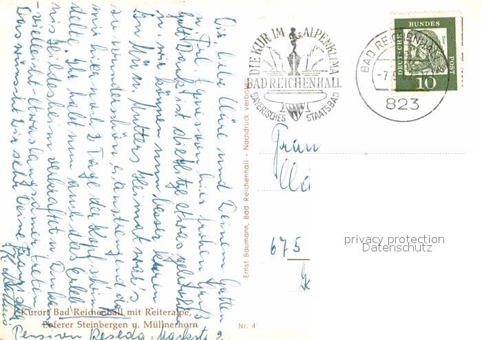 72894642 alte Postkarte Reichenhall Bad Reiteralpe Steinbergen postalisch gelaufen Erhaltung siehe scans [KathaD81] KatCode: 11110009172114