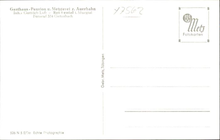 40764780 Reichental Gasthaus Pension Metzgerei Auerhahn KatCode 11110008216017