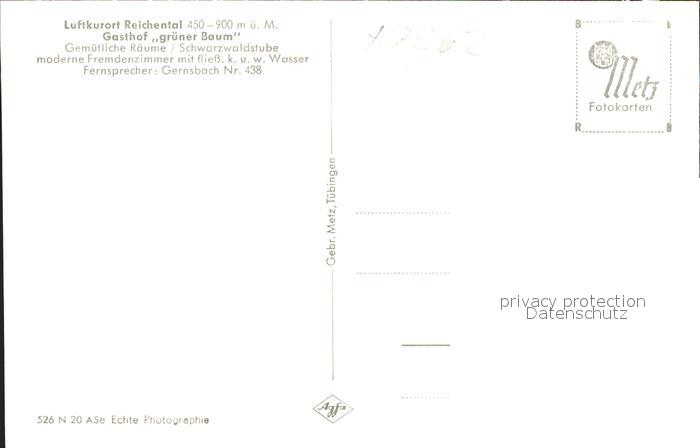 41775140 Reichental Gasthof gruener Baum postalisch nicht gelaufen Erhaltung siehe scans KatCode: 11110008216017