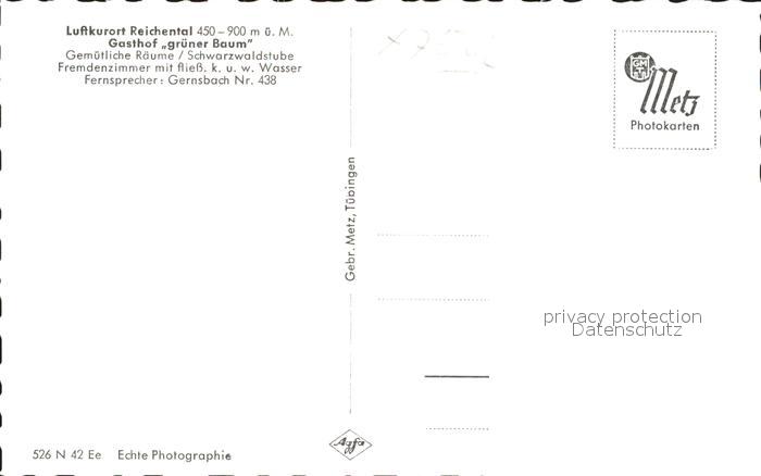 41775147 Reichental Gasthof gruener Baum Kirche postalisch nicht gelaufen Erhaltung siehe scans KatCode: 11110008216017