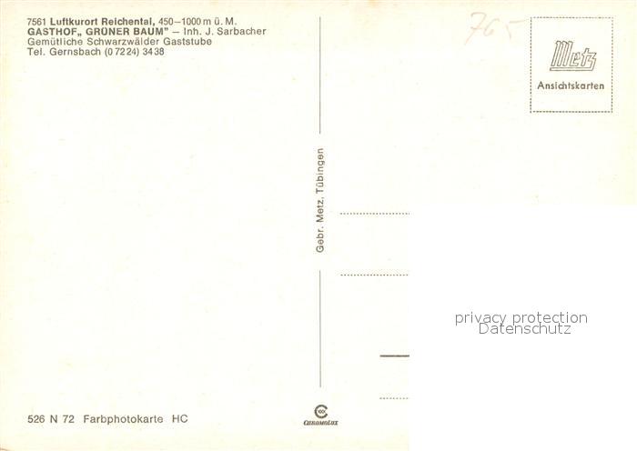 73645065 Reichental Gasthof Gruener Baum Schwarzwaelder Gaststube postalisch nicht gelaufen Erhaltung siehe scans [FriedD77] KatCode: 11110008216017