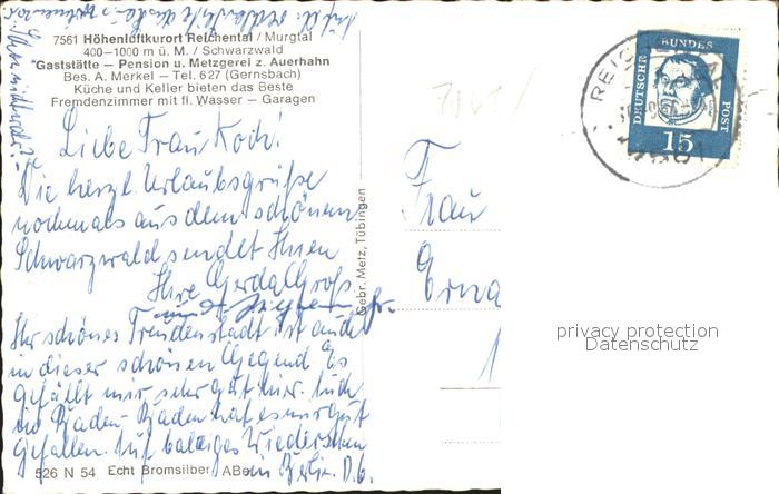31728217 alte Postkarte Reichental Gaststaette z. Auerhahn postalisch gelaufen Erhaltung siehe scans KatCode: 11110008216017
