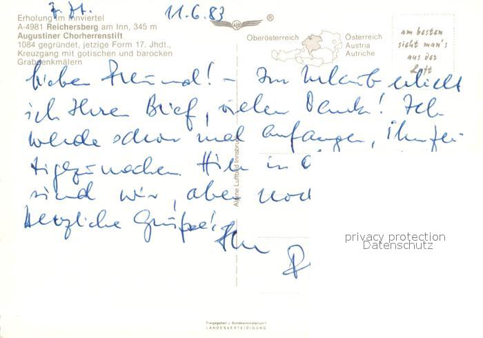13311620 Reichersberg Inn Fliegeraufnahme mit Augustiner Chorherrenstift postalisch nicht gelaufen Erhaltung siehe scans [WerneD78] KatCode: 11390311041224