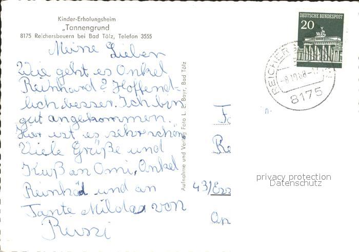 72338247 alte Postkarte Reichersbeuern Kinder-Erholungsheim Tannengrund postalisch gelaufen Erhaltung siehe scans KatCode: 11110009173140