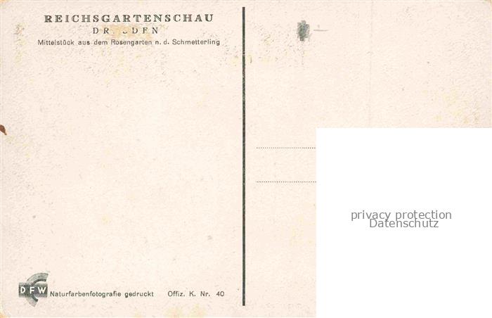 74041777 Reichsgartenschau 1936 Jahresschau DRESDEN Rosengarten Schmetterling postalisch nicht gelaufen Erhaltung siehe scans [IrynaD87] KatCode: 11110014262000