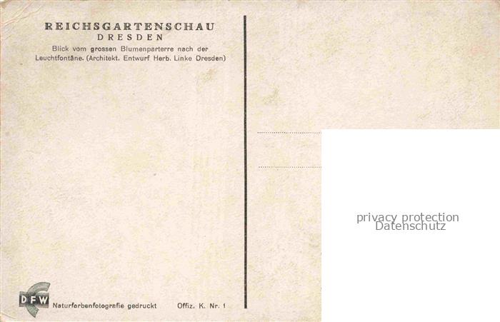 74041839 Reichsgartenschau 1937 Jahresschau DRESDEN Blumenparterre Leuchtfontaene postalisch nicht gelaufen Erhaltung siehe scans [IrynaD87] KatCode: 11110014262000