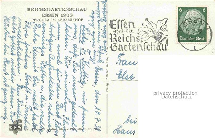 74041842 alte Postkarte Reichsgartenschau 1938 EssEN Pergola im Keramikhof postalisch gelaufen Erhaltung siehe scans [IrynaD87] KatCode: 11110005113000