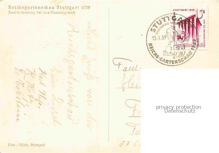 74090014 alte Postkarte Reichsgartenschau 1939 STUTTGART Nachts Wasserspielen postalisch gelaufen Erhaltung siehe scans [IrynaD87] KatCode: 11110008111000