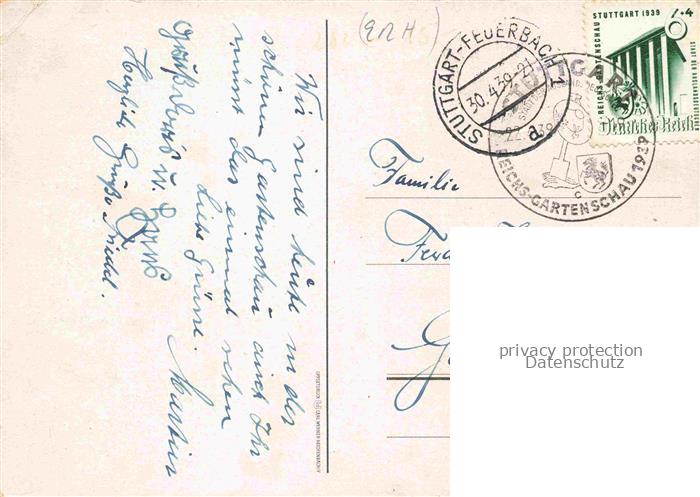 74054563 alte Postkarte Reichsgartenschau 1939 STUTTGART postalisch gelaufen Erhaltung siehe scans [IrynaD87] KatCode: 11110008111000