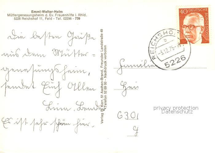 73127537 alte Postkarte Reichshof Emmi Welter Heim Muettergenesungsheim postalisch gelaufen Erhaltung siehe scans [FriedD77] KatCode: 11110005374040