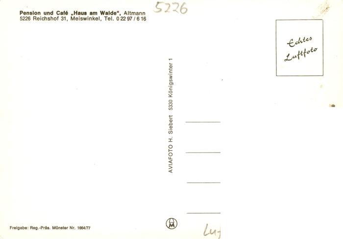 73890948 Reichshof NRW Pension Cafe Haus am Walde Fliegeraufnahme postalisch nicht gelaufen Erhaltung siehe scans [FriedD77] KatCode: 11110005374040