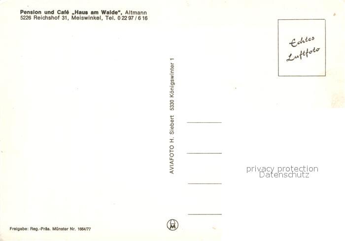 73010137 Reichshof Pension Cafe Haus am Walde Fliegeraufnahme postalisch nicht gelaufen Erhaltung siehe scans [WerneD78] KatCode: 11110005374040