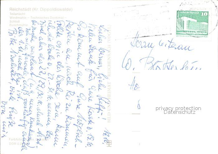 72354910 alte Postkarte Reichstaedt Dippoldiswalde Teilansicht Windmuehle Technisches Denkmal Schloss Buschmuehle postalisch gelaufen Erhaltung siehe scans KatCode: 11110014290080