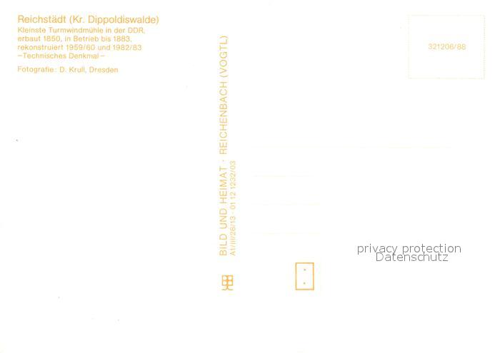 73063447 Reichstaedt Dippoldiswalde Turmwindmuehle Technisches Denkmal postalisch nicht gelaufen Erhaltung siehe scans [KathaD81] KatCode: 11110014290080