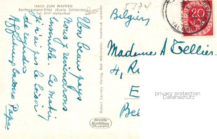 73689855 alte Postkarte Reifferscheid Eifel Partie am Fluss Blick zum Ort postalisch gelaufen Erhaltung siehe scans [FriedD77] KatCode: 11110005366020