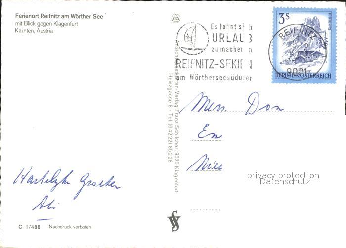 72605560 alte Postkarte Reifnitz Woerthersee Blick gegen Klagenfurt postalisch gelaufen Erhaltung siehe scans [AndreD76] KatCode: 11390