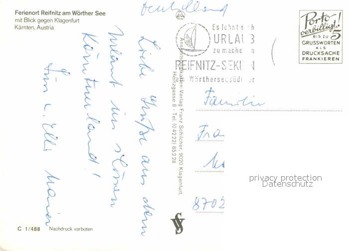 72678805 alte Postkarte Reifnitz Woerthersee Fliegeraufnahme mit Woerthersee Klagenfurt Kaernten postalisch gelaufen Erhaltung siehe scans [LiesaD40] KatCode: 11390