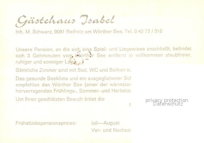13234753 Reifnitz Woerthersee Gaestehaus Isabel Bucht Fliegeraufnahme postalisch nicht gelaufen Erhaltung siehe scans [FriedD77] KatCode: 11390