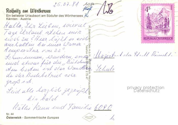 72835103 alte Postkarte Reifnitz Woerthersee mit Alpen Fliegeraufnahme postalisch gelaufen Erhaltung siehe scans [FriedD77] KatCode: 11390