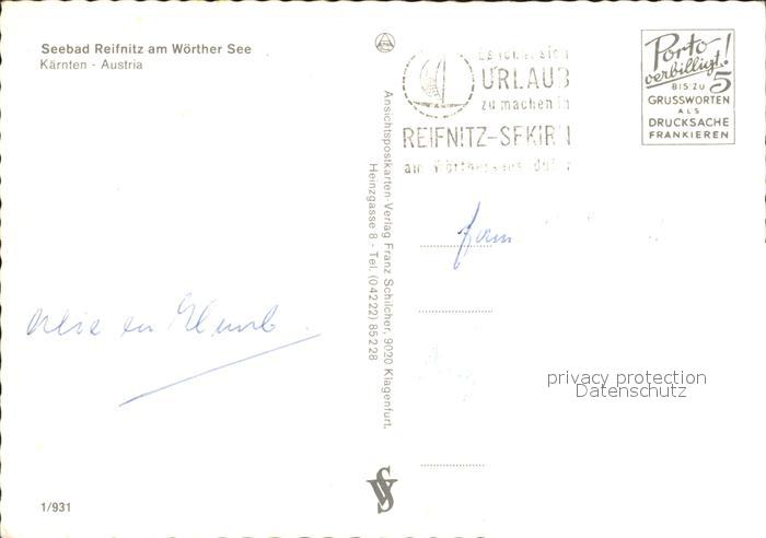 72092960 alte Postkarte Reifnitz Woerthersee Seebad postalisch gelaufen Erhaltung siehe scans KatCode: 11390