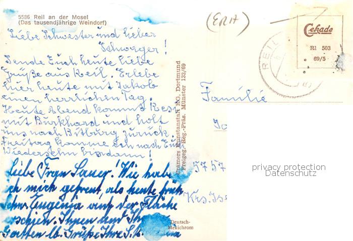 73836398 alte Postkarte Reil Mosel Fliegeraufnahme postalisch gelaufen Erhaltung siehe scans [FriedD77] KatCode: 11110007231110