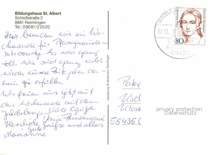 72838649 alte Postkarte Reimlingen Bildungshaus Sankt Albert postalisch gelaufen Erhaltung siehe scans [AndreD76] KatCode: 11110009779203