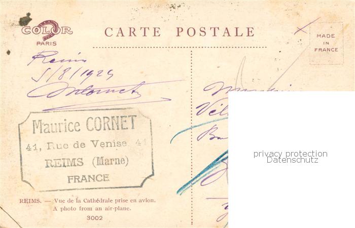 13772229 Reims 51 Vue de la Cathedrale prise en avion postalisch nicht gelaufen Erhaltung siehe scans [FriedD77] Frie Katcode 11170051351454