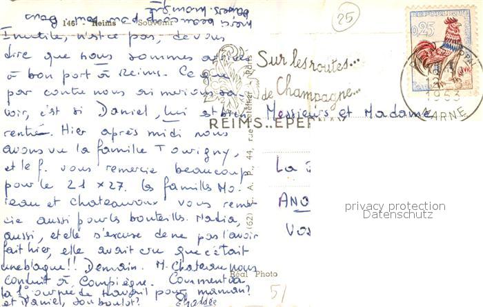 13506396 carte postale Reims Champagne Ardenne Bouteille de Champagne postalisch gelaufen Erhaltung siehe scans [FriedD77] KatCode: 11170051351454