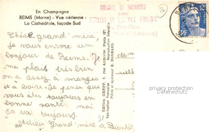 13506404 carte postale Reims Champagne Ardenne Cathedrale vue aérienne postalisch gelaufen Erhaltung siehe scans [FriedD77] KatCode: 11170051351454