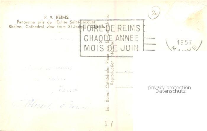 13506392 carte postale Reims Champagne Ardenne Cathedrale vue prise de l’Eglise Saint Jacques postalisch gelaufen Erhaltung siehe scans [FriedD77] KatCode: 11170051351454