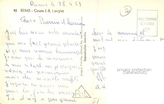 13506394 Reims Champagne Ardenne Cours Jean Baptiste Langlet postalisch nicht gelaufen Erhaltung siehe scans [FriedD77] KatCode: 11170051351454