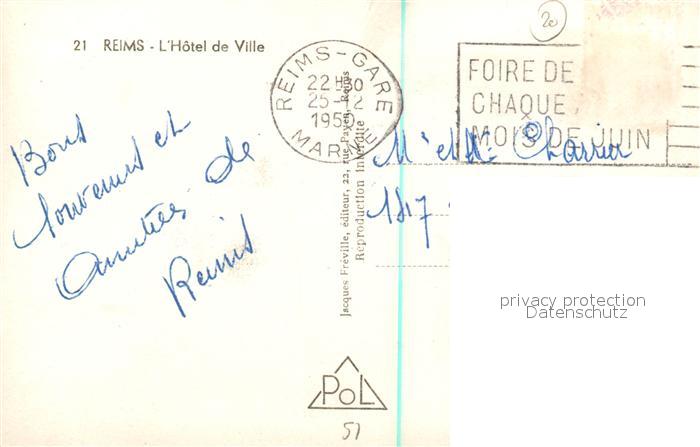 13506386 carte postale Reims Champagne Ardenne Hôtel de Ville Rathaus postalisch gelaufen Erhaltung siehe scans [FriedD77] KatCode: 11170051351454