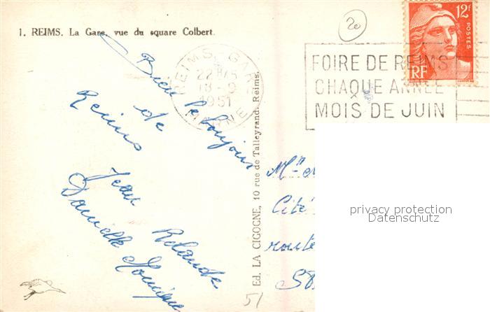13506391 carte postale Reims Champagne Ardenne La Gare vue du Square Colbert Monument postalisch gelaufen Erhaltung siehe scans [FriedD77] KatCode: 11170051351454