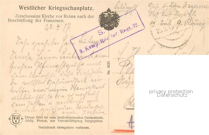 13132768 carte postale Reims Champagne Ardenne Westlicher Kriegsschauplatz Zerschossene Kirche postalisch gelaufen Feldpost Erhaltung siehe scans [KathaD81] KatCode: 11170051351454