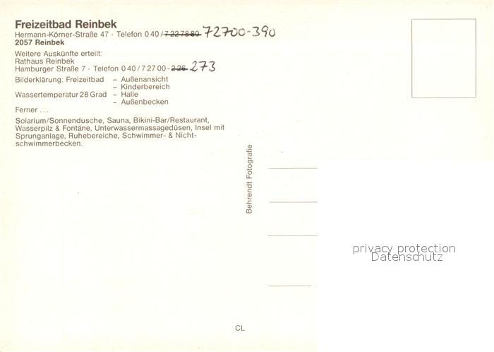 73321214 Reinbek Freizeitbad Reinbek Hallenbad Freibad postalisch nicht gelaufen Erhaltung siehe scans [FriedD77] KatCode: 11110001062060
