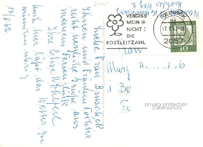 73740584 alte Postkarte Reinbek Muehlenteich postalisch gelaufen Erhaltung siehe scans [WerneD78] KatCode: 11110001062060