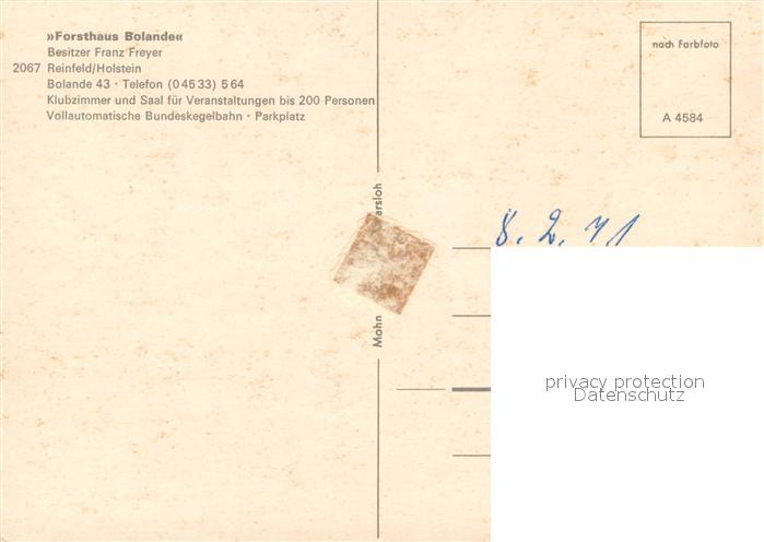 73711414 Reinfeld Holstein Forsthaus Bolande Aussenansicht postalisch nicht gelaufen Erhaltung siehe scans [LiesaD40] KatCode: 11110001062061