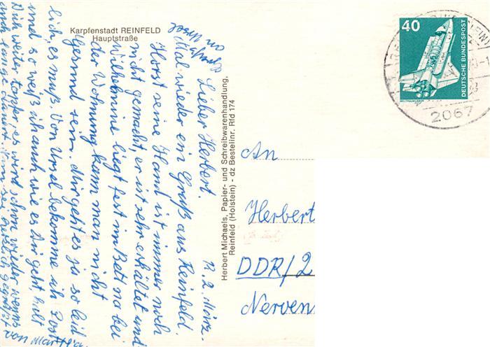 73886108 alte Postkarte Reinfeld Holstein Hauptstrasse postalisch gelaufen Erhaltung siehe scans [FriedD77] KatCode: 11110001062061